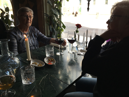 Annas snälla mamma och Anna förser sig med mat på Byblos