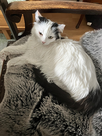 Lucifer ihoprullad på kökssoffan