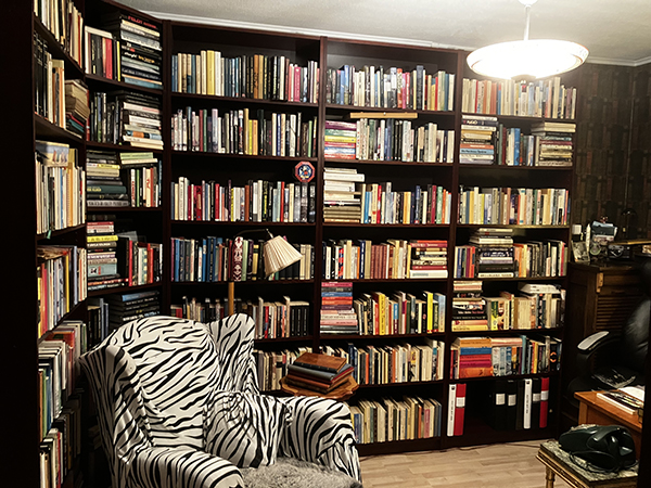 Hyllan är fylld! Långväggen bakom Zebrafåtöljen…