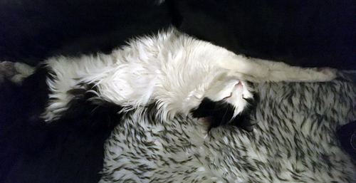 Lucifer sträcker ut sig på fällen på soffan