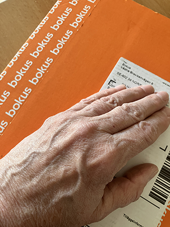 Paket från Bokus med min hand på