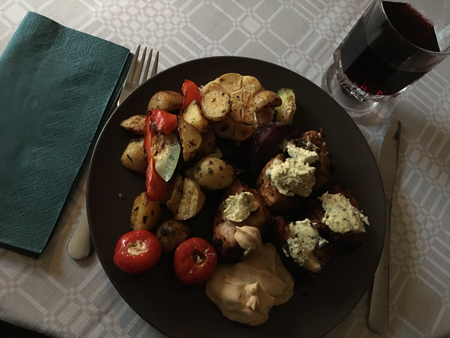 Ugnsbakade grönsaker och rotfrukter kolgrillad kyckling och ripasso