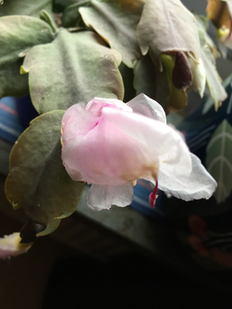 Den vita och lila novemberkaktusen som Anna fick av mamma (Anna valde själv) blommar…
