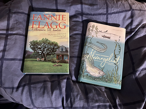 Bokbyte från en bok om en himmelsk tur till en bok och fisk och en farsa.