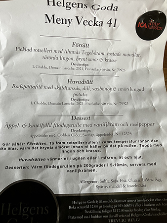 Kvällens meny.