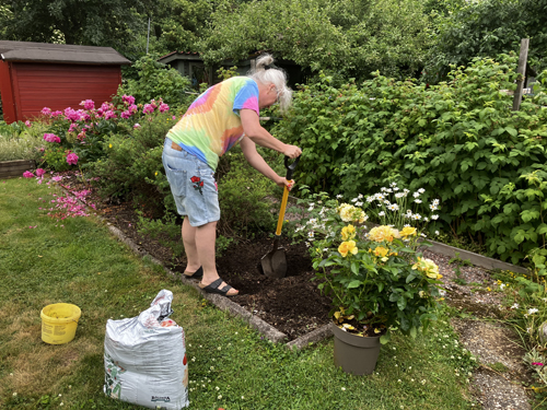 Anna planterar rosenbuske