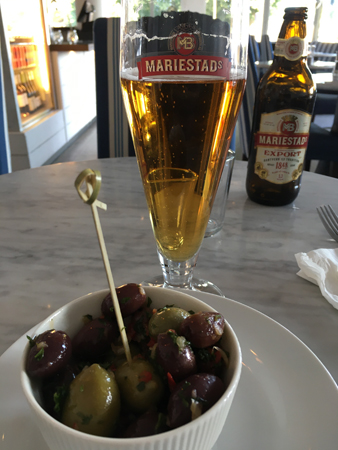 Oliver och öl till förrätt.