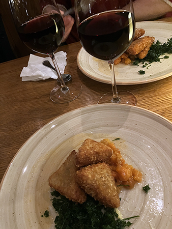 Friterad Västerbottenost och rödvin på Zum Franziskaners bakficka