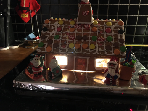 Dekorerat pepparkakshus baksida