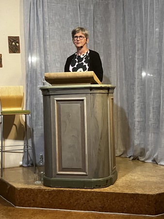 Christina Wahldén vid författarstafetten i Missionskyrkan