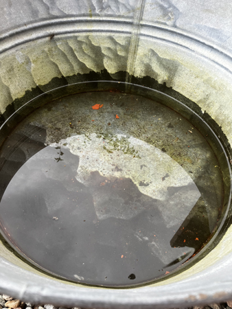 En zinkbalja med regnvatten.