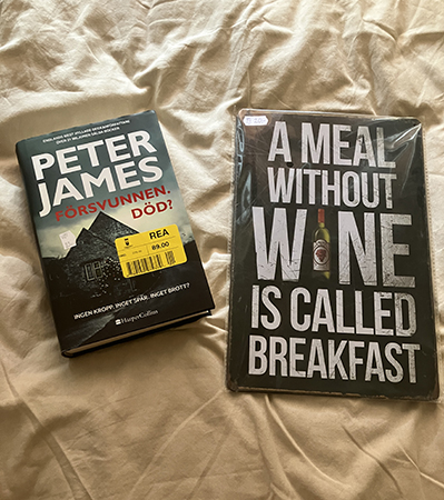 Den här boken köpte jag samt vin-skylten.