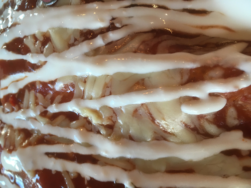 Enchilladas med mycket ost.