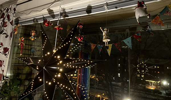 Fönstret i Salen med stjärna o mina julfigurer 2022