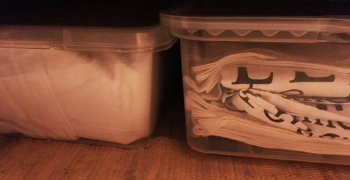 Jag har gått igenom fem plastlådor linne under gästsängen…