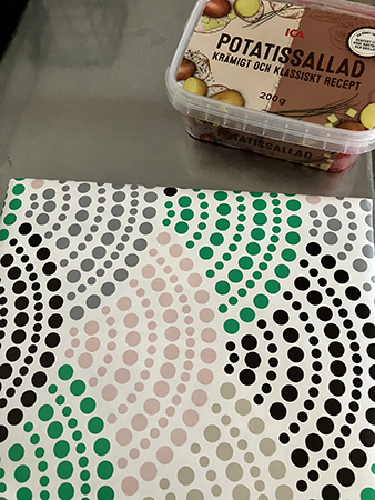Potatissalladsburk med hallon och paket från Annas snälla mamma