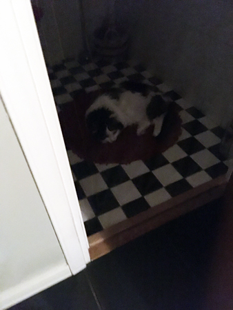 Prinskorven Lucifer kröp in på gästtoan och la sig på golvet.