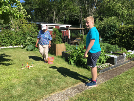 Mormor och barnbarn fusk… kastar ringar.