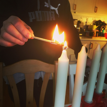 Anna tänder det första adventsljuset.