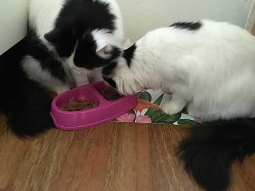 1 Lucifer och Citrus trängs vid matskålarna