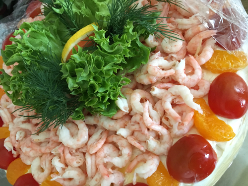 Smörgåstårta med räkor.