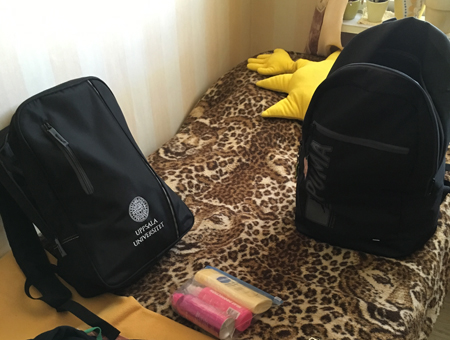 Packat och klart för avfärd från New Village där en får såväl rökskador som hörselskador om en stannar för länge.