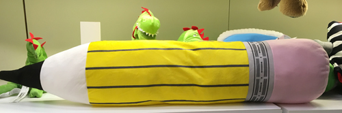 Penna med små drakar alt. hönor bakom och kanske ett par bruna kulor överst till höger?