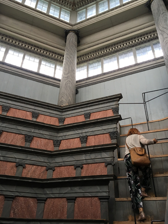 Mia springer upp för trapporna i Anatomiska teatern.