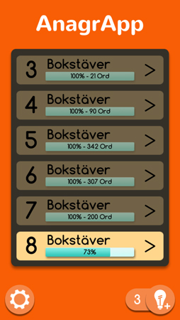 6 AnagrApp åtta bokstäver 73 procent