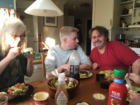 Anna såsar, Elias och Jerry vill äta.