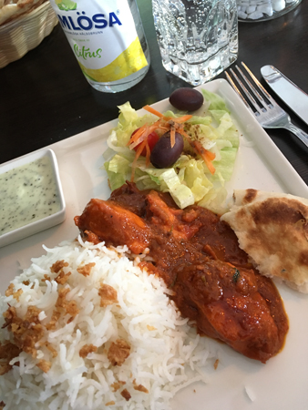 28 Chicken Vindaloo med ris grönsaker och myntasås