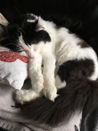 …sonen/brodern låg på sin kudde i en annan soffa.