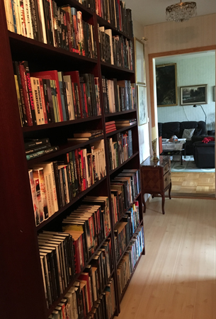 Bokhyllorna i hallen är kvar. Jag trotsar mäklaren.