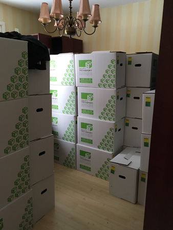 Totalt blev det 42 kartonger med böcker i arbetsrummet…