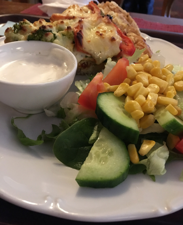 Dansk filopaj med ädelost och broccoli samt grönsaker blev en sen lunch.