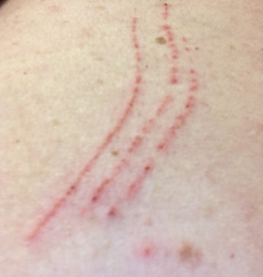 Ibland gör hon så här på mig (magen) för att få ligga kvar i skrivbordsstolen.