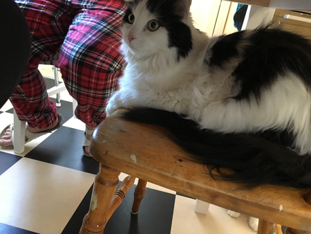 9 Lucifer på köksstol under bordet