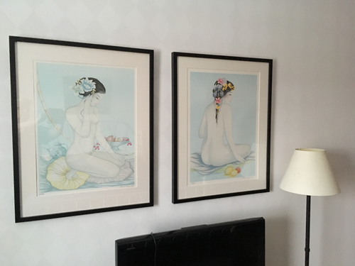 De nakna tjejerna sitter nu äntligen tillsammans i vårt gemensamma sovrum.