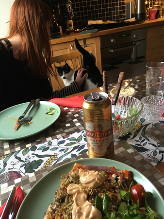 Lördagsmiddag i köket. E ser lite hårig ut, tycker jag.