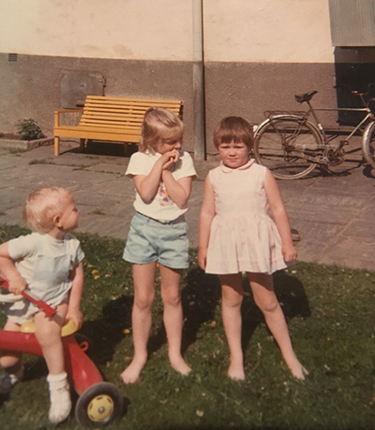 Lille Per, jag och Lena Kling-Kling hemma på bakgården.
