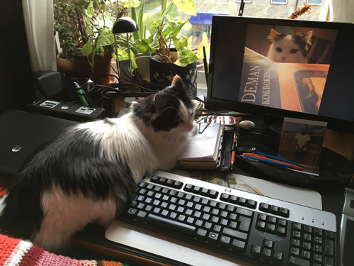 Lucifer vid datorn och Citrus på skärmen. Strax efteråt kräktes han – fast inte på datorn.