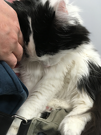 Vår lille sjukling satt i knä en stund.