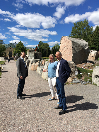 Tim, Camilla och Krister bland ”stenarna” som Liz har köpt. (Insatta fattar.)