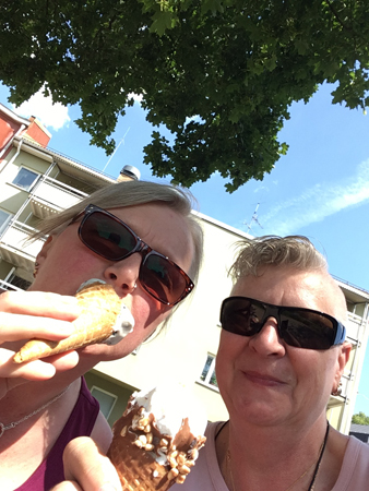 Anna bjöd blindstyret på glass och vi åt den på en bänk vid floden.
