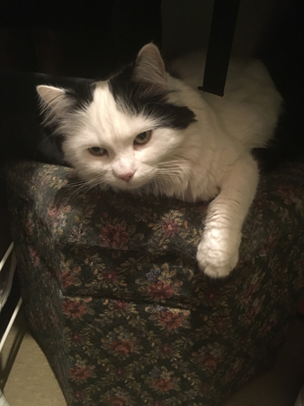 Citrus, sur som en citron, blev störd i tuppluren på sypuffen när jag skulle ta den här bilden.