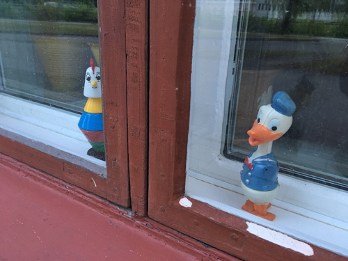 En och annan lustiger figur i ett fönster.