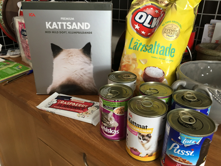 Familjen Katt har fått påfyllt och jag har också köpt mig nåt gott till helgen.