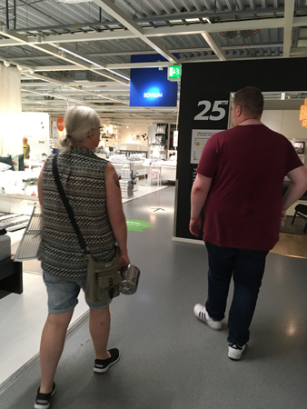 Mor och son på IKEA – innan vi tog en varuvagn.
