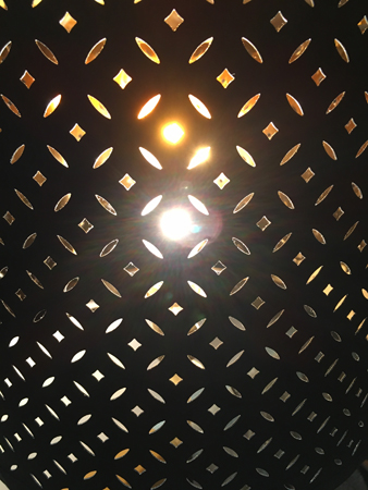 Hettan, här illustrerad av glödlampan bakom vår nya skärm till golvlampan i sovrummet.