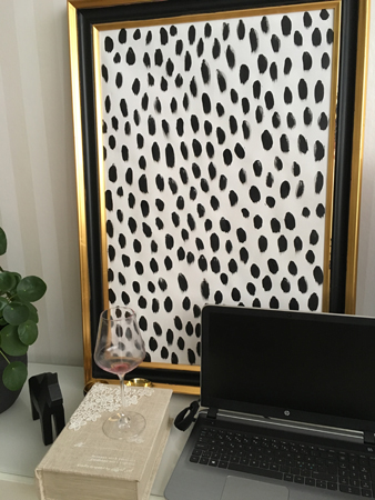Ett stilleben hos Mia som jag ligger och betraktar från soffan där jag sover.